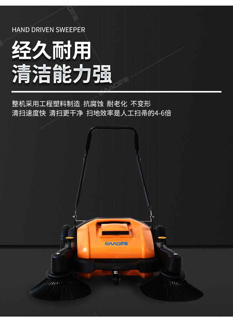 手推式掃地機(jī)能清潔房屋周邊范圍:包括小路,公路,車道和院子,能比用普通的掃把和簸箕節(jié)省5倍的時(shí)間,清掃時(shí)垃圾被迅速的收集到塵箱,簡(jiǎn)單、快速、干凈。