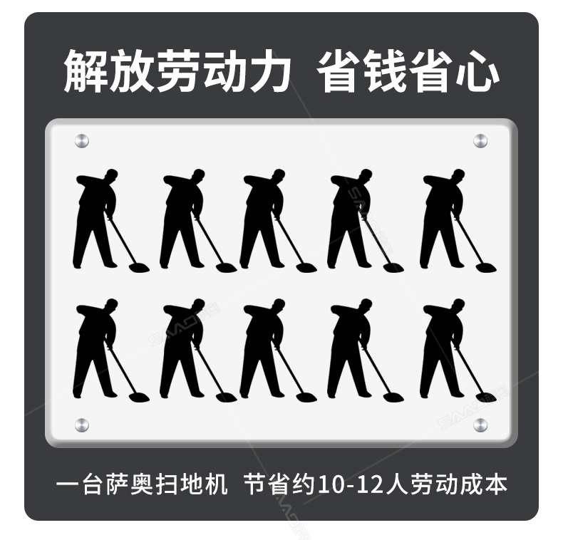 適用于清掃廠(chǎng)區(qū)車(chē)間、公園、街道、車(chē)站、碼頭、物業(yè)小區(qū)、倉(cāng)庫(kù)、學(xué)校、體育場(chǎng),機(jī)場(chǎng)等區(qū)域。清掃效率是傳統(tǒng)的人工清掃效率的10-12倍,一臺(tái)掃地機(jī)可代替10-12位清潔工人。