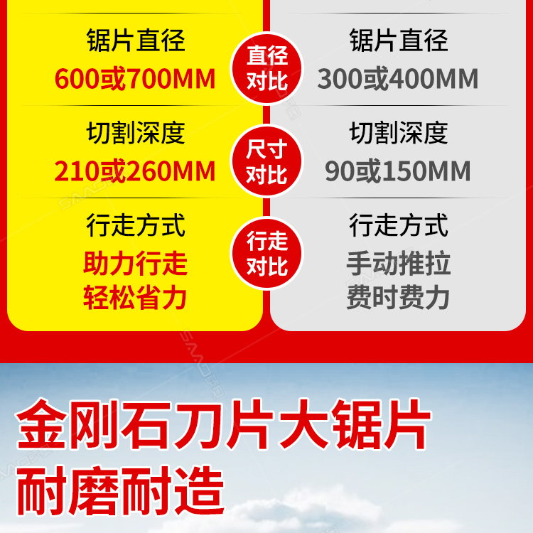 大直徑馬路切割機(jī)用于瀝青路面、水泥路面、混凝土制品、石材等的切割作業(yè)。
