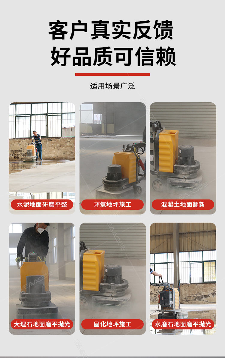 產(chǎn)品用途Product Usage: 其廣泛用于混凝土地面、石材地面的研磨、拋光,終達到舊地面翻新、新地面無塵的效果。 如:地坪研磨、水泥糙地打磨、舊環(huán)氧地坪翻新、密封固化地坪拋光。
