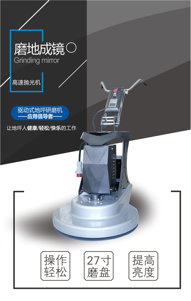 拋光機(jī)是為了讓地面表面有光澤,需要先研磨后才可以拋光。拋光分為粗拋和精拋,這時(shí)候可以使用拋光機(jī),配合拋光墊,提高地面的光澤度。高速地坪拋光機(jī)讓你輕松完成地坪拋光工作,提高地坪亮度。