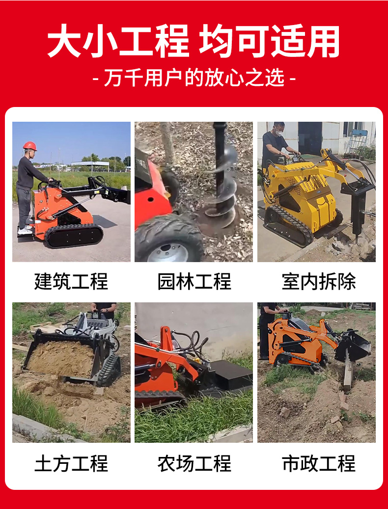 滑移裝載機液壓舉升,可以任意搭配輔具。
