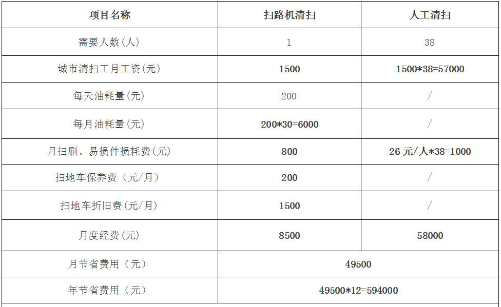 結(jié)論:薩奧路面保潔養(yǎng)護(hù)清掃機每年可至少節(jié)省費用將近60萬元。
