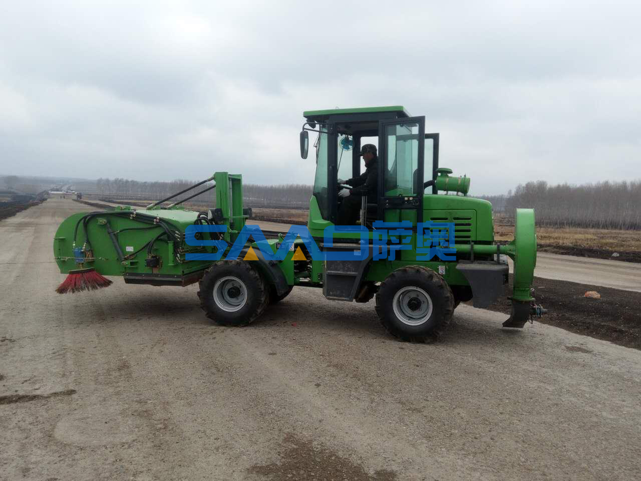 薩奧道路施工強力清掃機(SA160QT),吹掃一體機,動力強勁、垃圾可回收,邊掃邊吹風(fēng),一次性徹底解決路面垃圾厚的問題,大容積垃圾箱裝料多,自動掃水降塵、自動卸料,垃圾非常方便裝車,裝車高度3米、自動檔駕駛操作簡單靈活,兩邊盤刷作業(yè)讓死角無殘留,是道路施工路面垃圾清掃設(shè)備,專業(yè)用于高速公路、市政建設(shè)和路橋建設(shè)過程中水穩(wěn)層及銑刨路面的清掃工作。