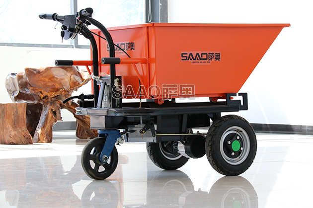 新型電動(dòng)斗車相比于傳統(tǒng)的翻斗車改用了電力推動(dòng),前進(jìn)、后退兩檔操作,告別了過(guò)去用人力推車,比較費(fèi)力,人員勞動(dòng)強(qiáng)度大等弊病。新型電動(dòng)斗車由人員控制方向,手柄控制速度自