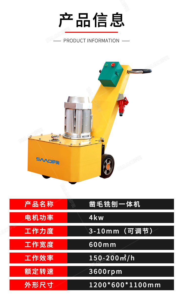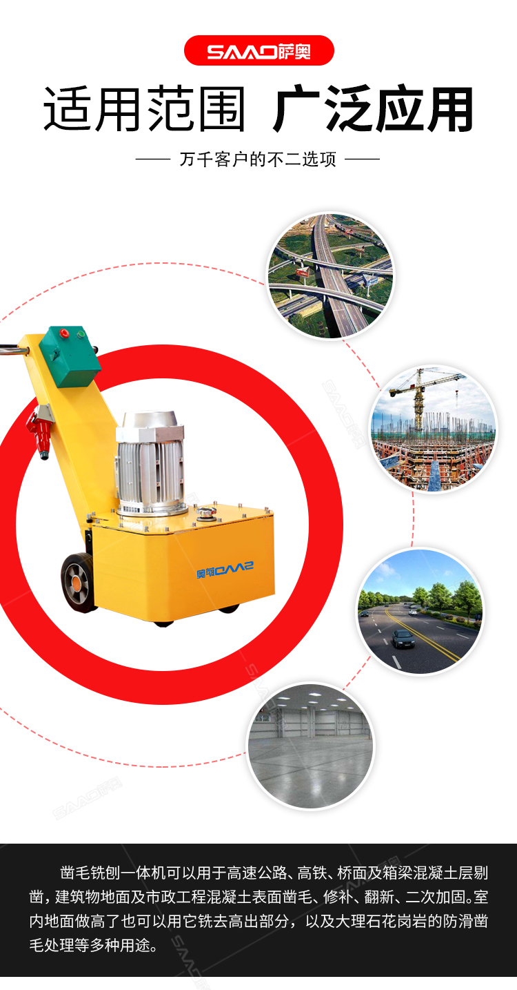 一、產(chǎn)品簡介: 鑿毛銑刨一體機(jī),不需要空壓機(jī),純電動,主要用于高速公路,高鐵,橋面及箱梁混凝土面層剔鑿,建筑物地面及市政工程混凝土表面鑿毛,修補(bǔ),翻新,二次加固。室
