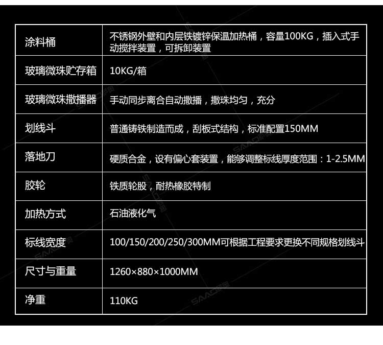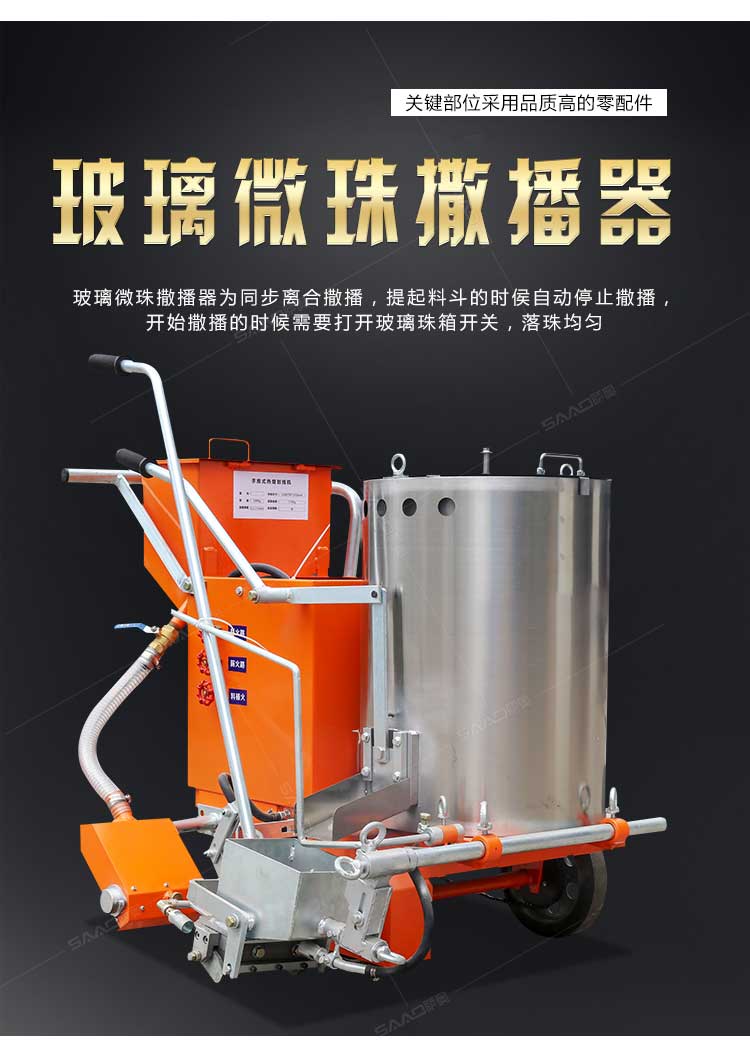 SAAO-160手推熱熔劃線機采用普通鑄鐵劃線斗,同步離合玻璃微珠自動撒播器,具有結(jié)構(gòu)簡單、輕便、價優(yōu)、性能優(yōu)良等特點。