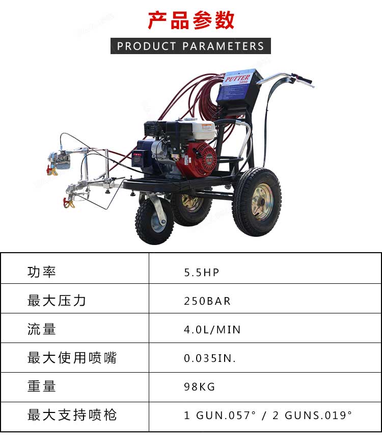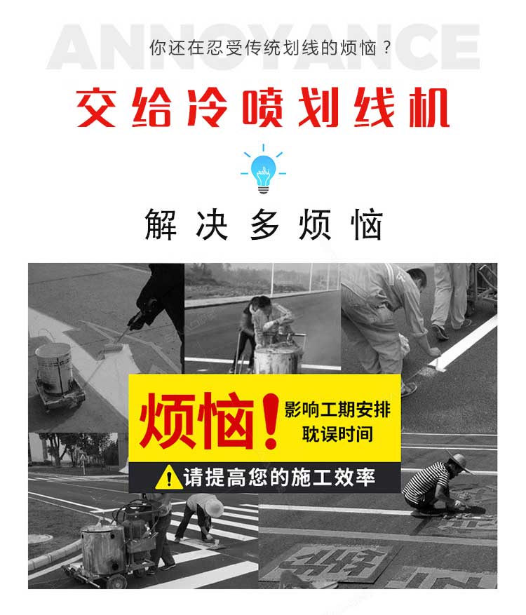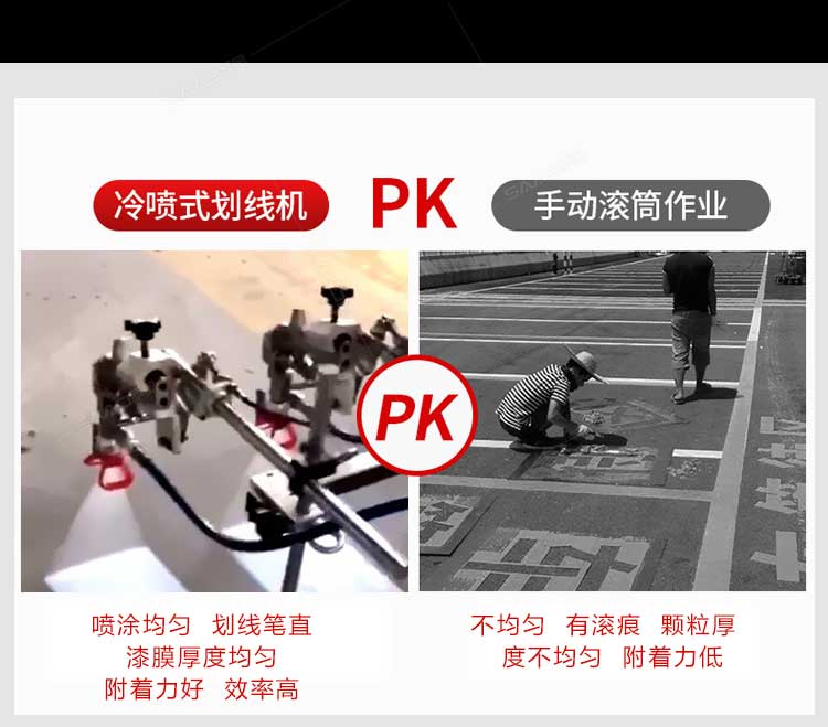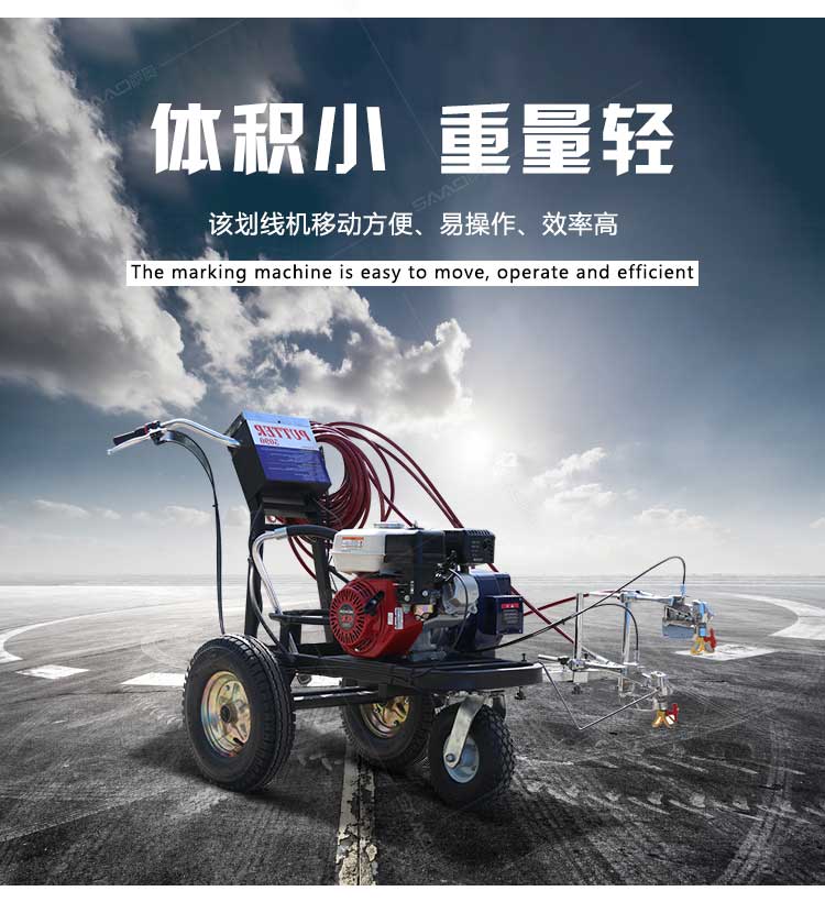 產(chǎn)品介紹: 冷噴劃線機(jī)是常溫標(biāo)線施工的專用設(shè)備,噴出的線型清晰、流暢、飽滿、均勻,主要用于公路、停車場、機(jī)場、加油站、公司廠區(qū)等涂畫直線、虛線、曲線、斑馬線、文字、