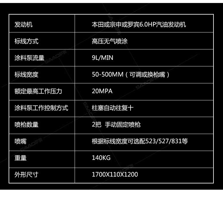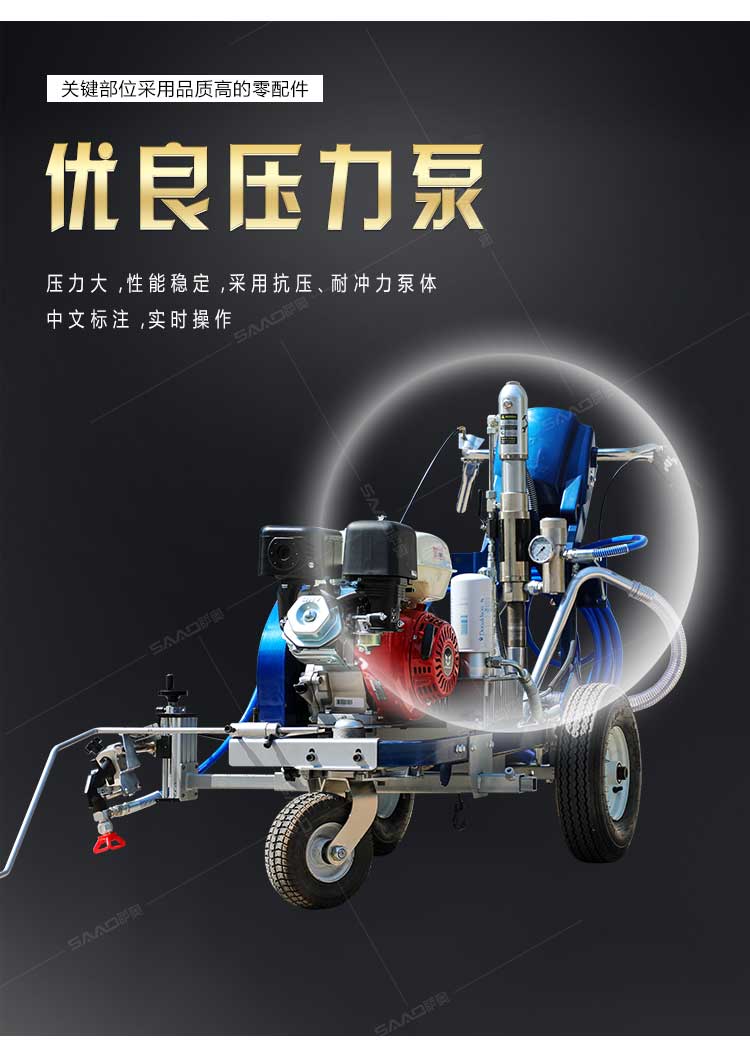 產(chǎn)品介紹: 手推常溫標(biāo)線機(jī)是常溫標(biāo)線施工的專(zhuān)用設(shè)備,噴出的線型清晰、流暢、飽滿(mǎn)、均勻,主要用于公路、停車(chē)場(chǎng)、機(jī)場(chǎng)、加油站、公司廠區(qū)等涂畫(huà)直線、虛線、曲線、斑馬線、文