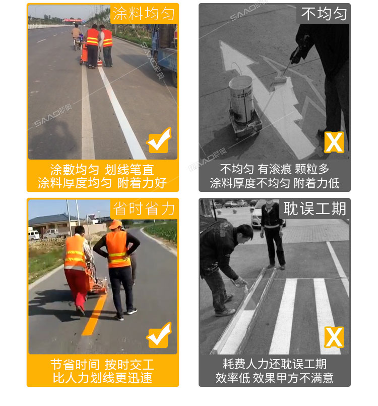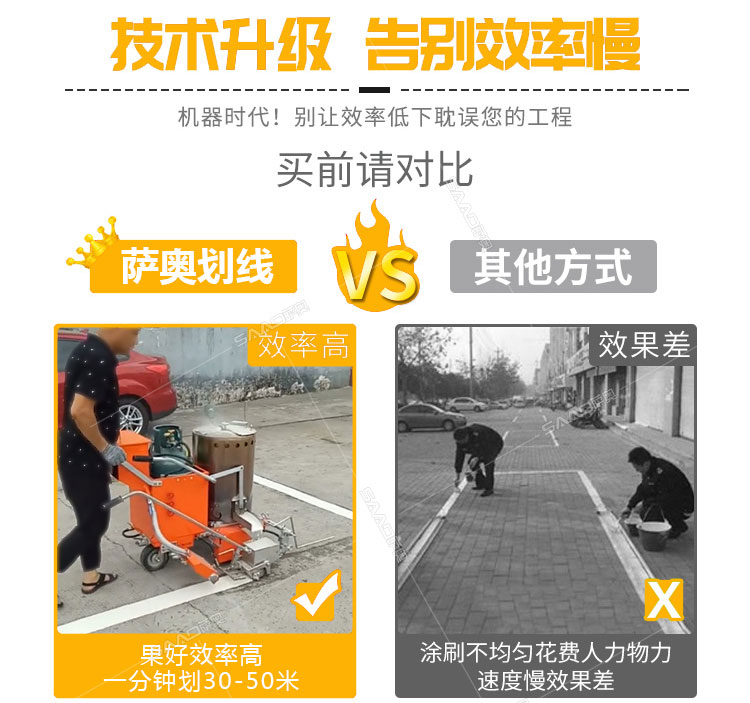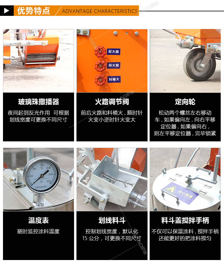 手推式熱熔劃線一體機,一種廣泛應(yīng)用于道路、高整公路、停車場、廣場和跑道的在平整的地面上劃出不同約束、指引和警示等規(guī)則限制標志的路面施工機械。劃線機以其快速、高效、