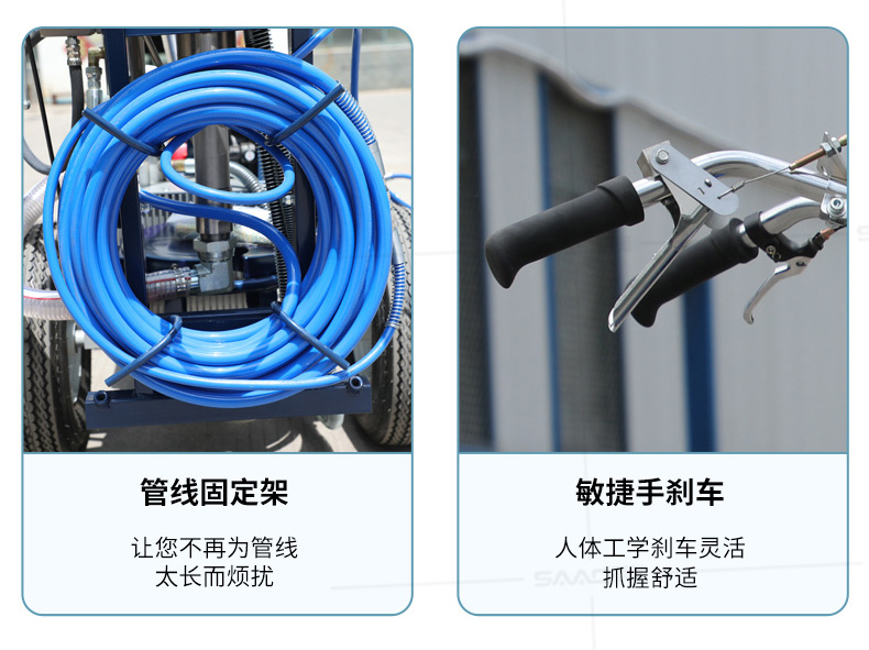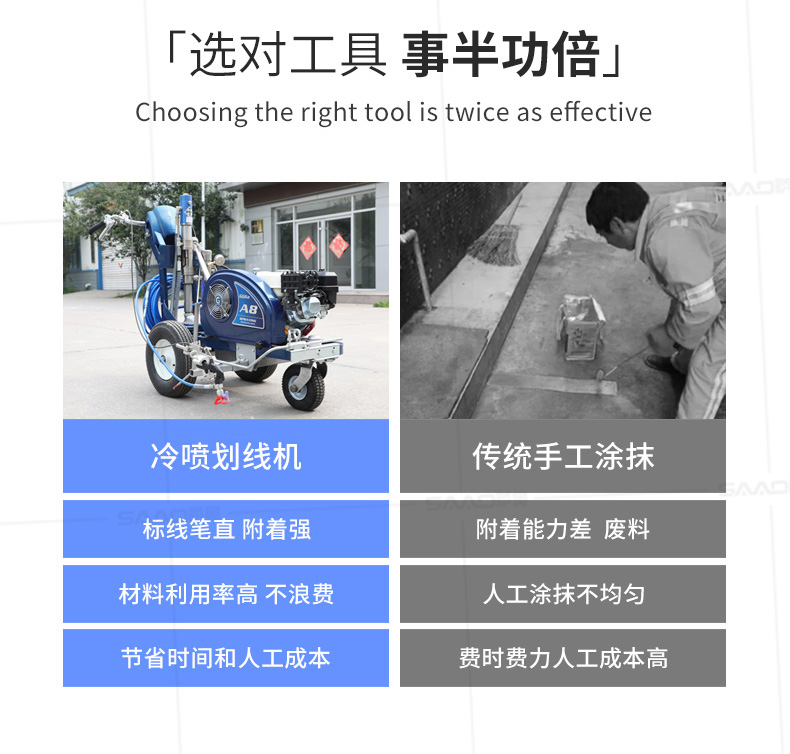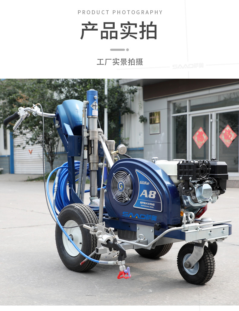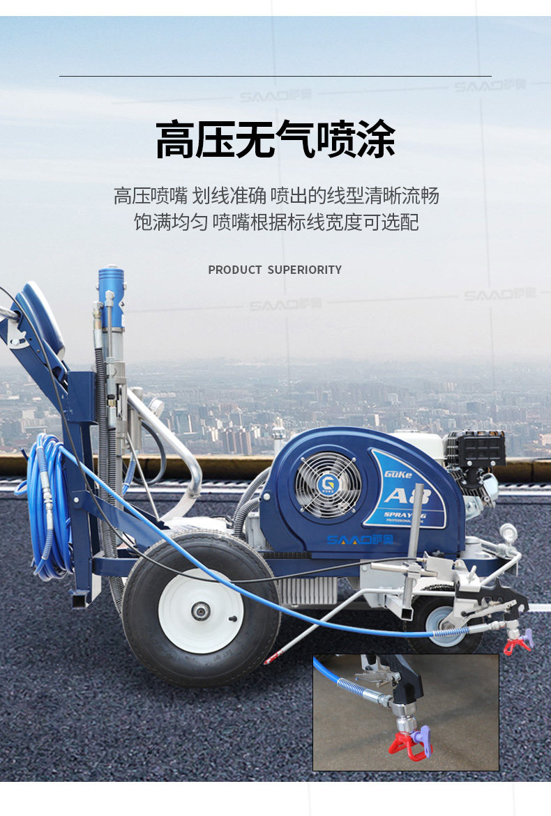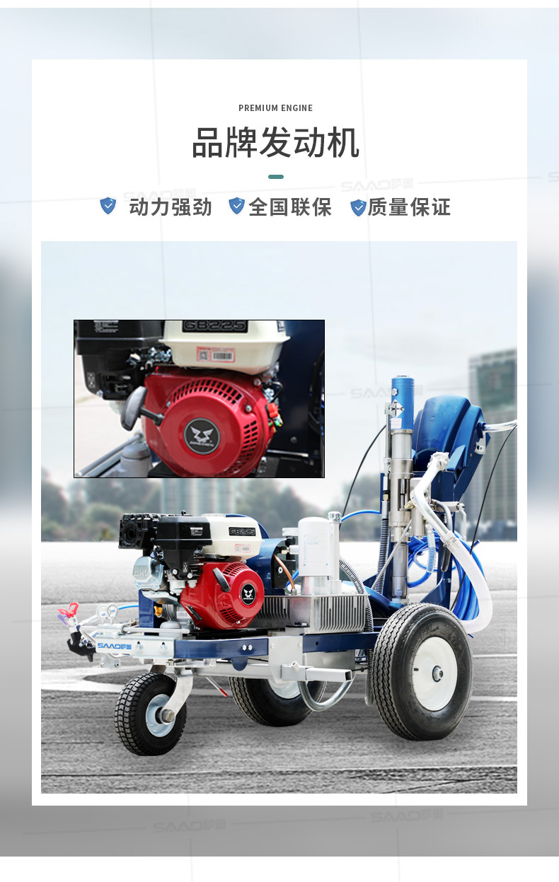 主要用于公路、市區(qū)、停車場(chǎng)、機(jī)場(chǎng)等涂劃直線、虛線、曲線、文字、箭頭等。具有劃線效果好、速度快、效率高、適用范圍廣、使用方便等優(yōu)點(diǎn)。