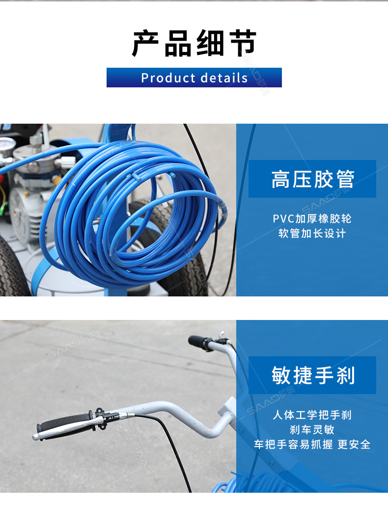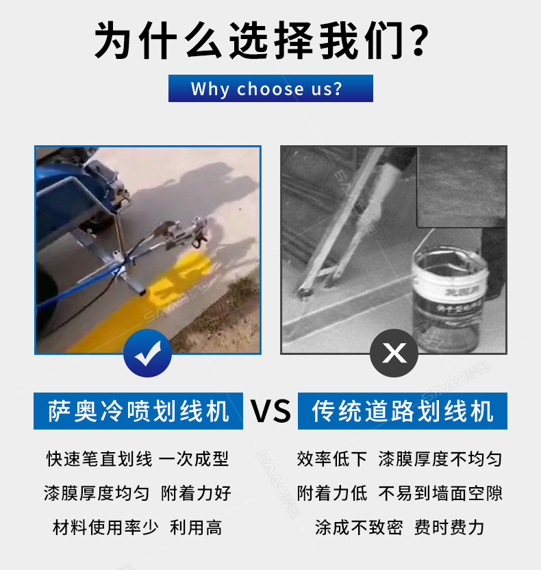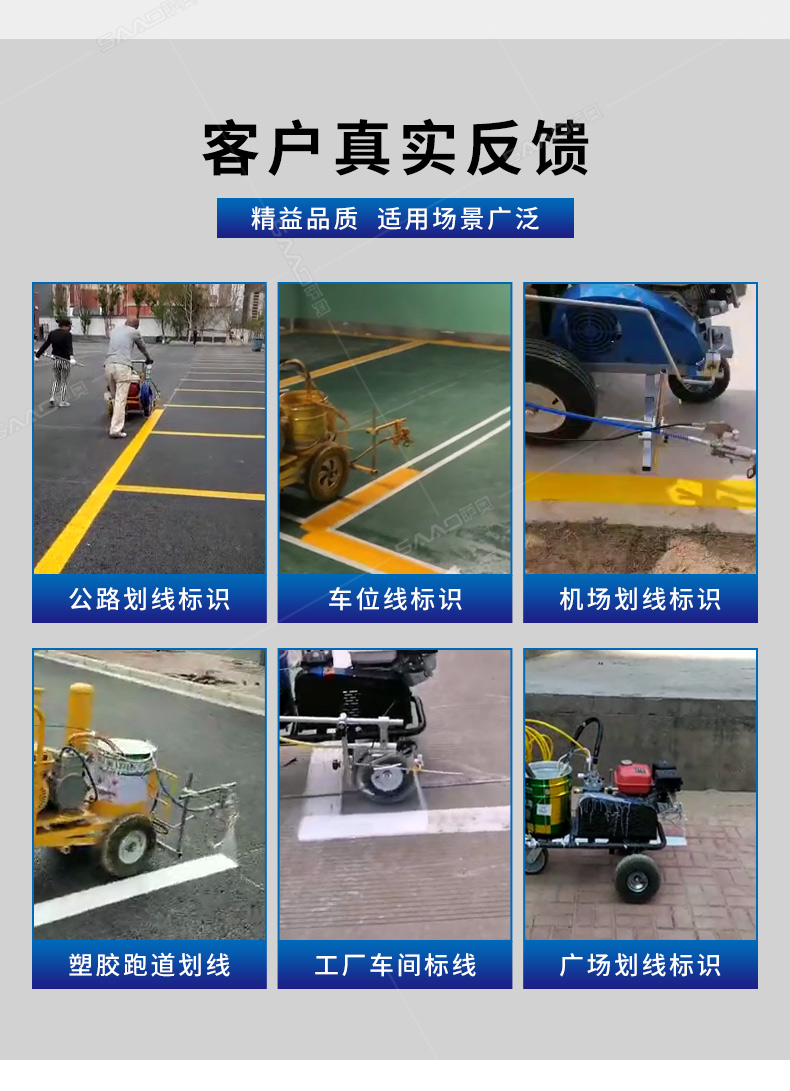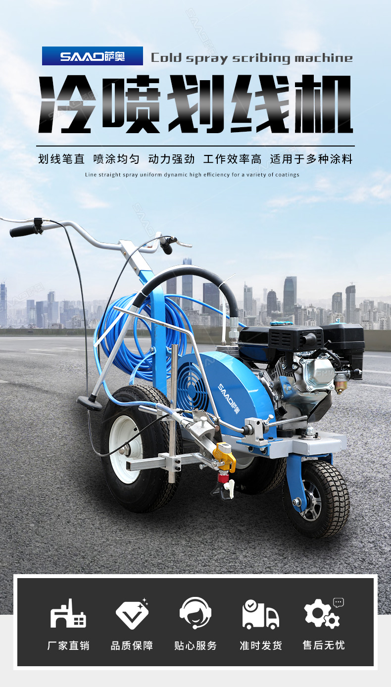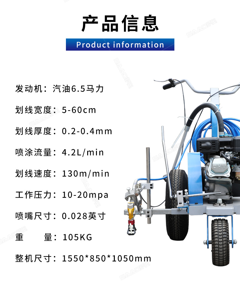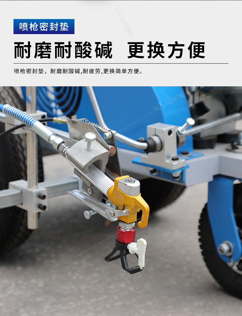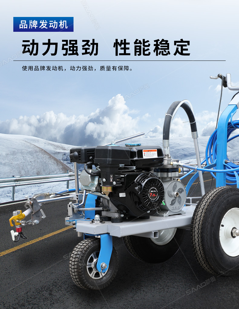 主要用于公路、市區(qū)、停車(chē)場(chǎng)、機(jī)場(chǎng)等涂劃直線、虛線、曲線、文字、箭頭等。具有劃線效果好、速度快、效率高、適用范圍廣、使用方便等優(yōu)點(diǎn)。 【優(yōu)勢(shì)特點(diǎn)】 1.高壓噴嘴劃線,準(zhǔn)確