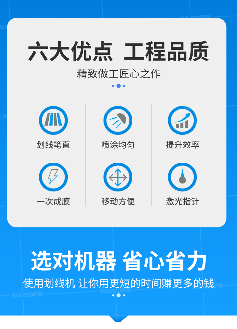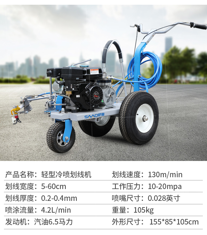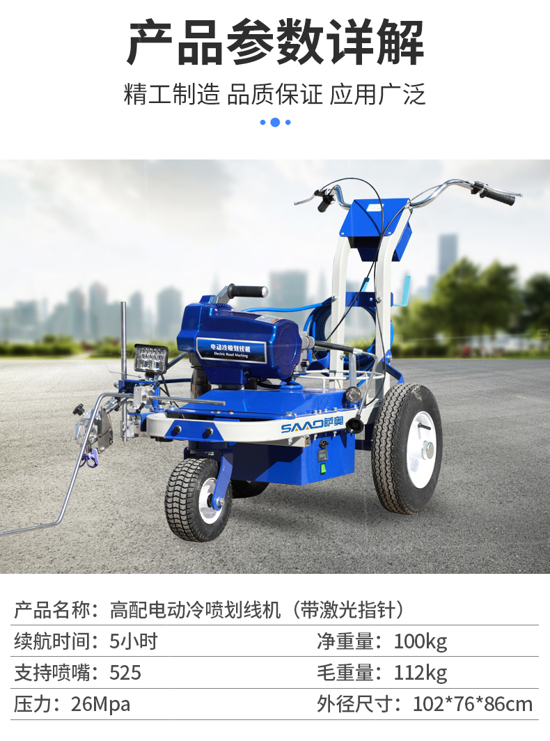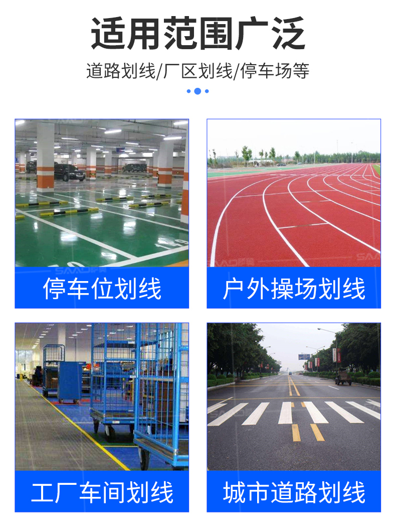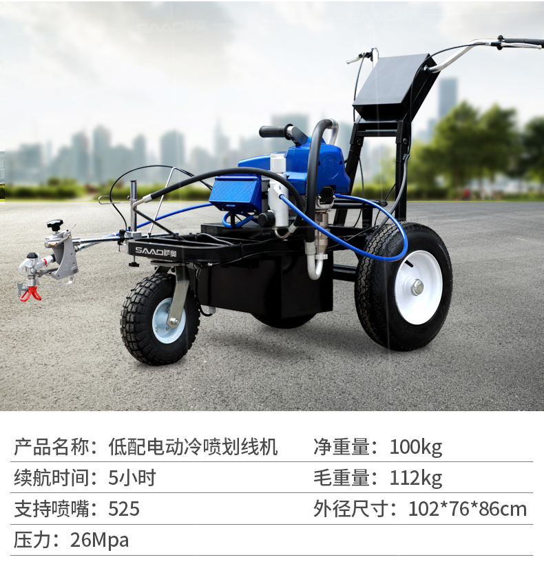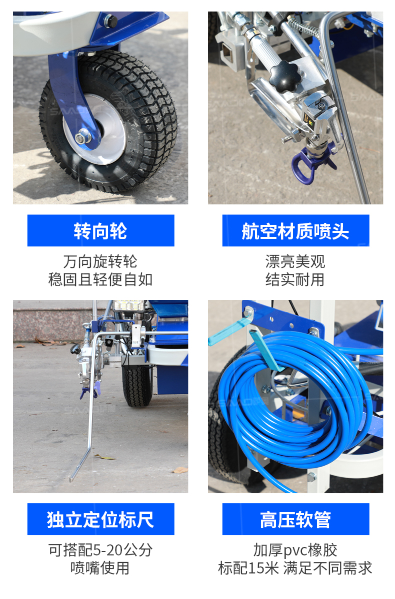 【產(chǎn)品介紹】 小區(qū)物業(yè)、地下車庫、學校、加油站、駕校場地等噴涂工作量不是特別大的客戶 【產(chǎn)品優(yōu)勢】 持久續(xù)航,運行穩(wěn)定,劃線筆直,無噪音。 真空氣輪:減震效果更為顯著平