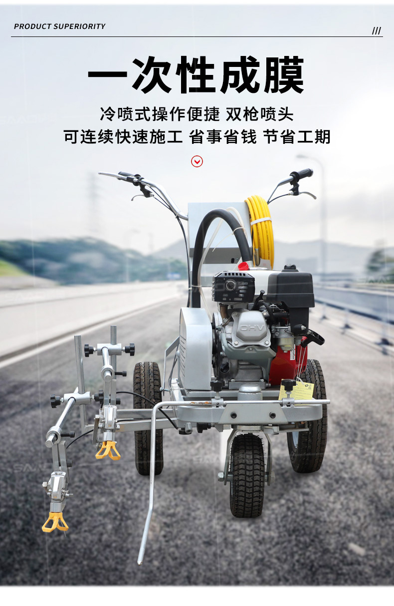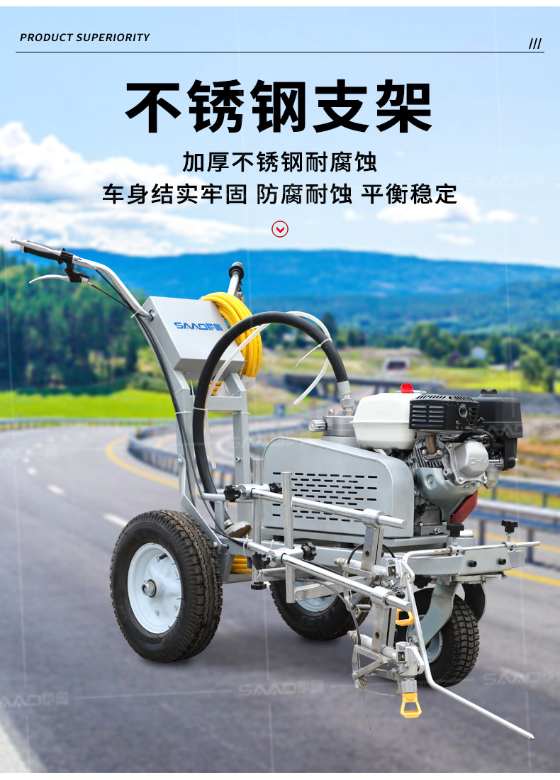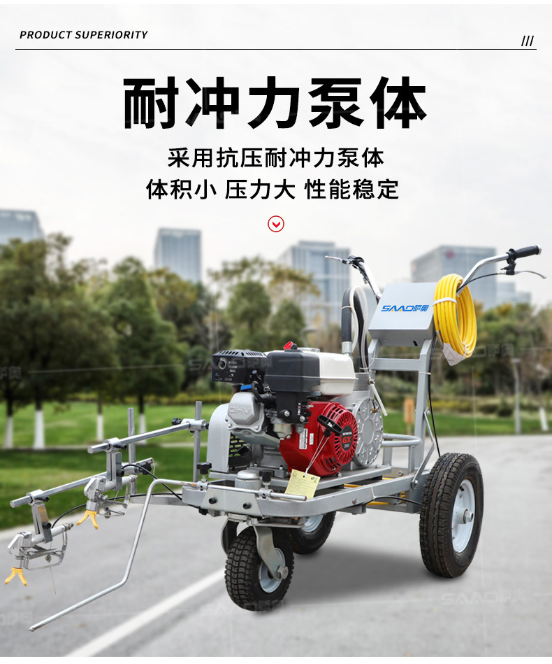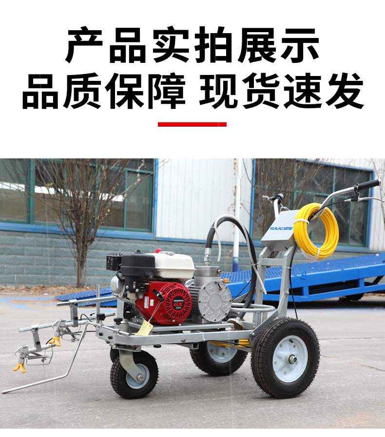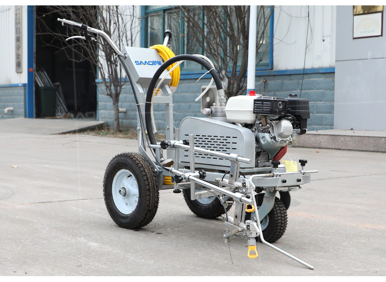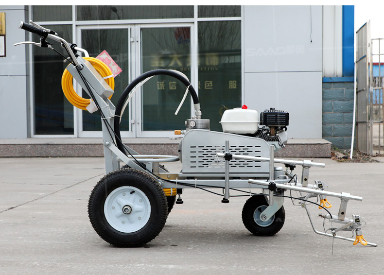 小型手推式道路劃線機(jī)是一種在道路、停車場、廣場和跑道等平整地面上劃出不同約束、指引和警示等規(guī)則限制標(biāo)志的路面施工機(jī)械。最常見的就是在馬路上劃斑馬線,在路上劃車庫線