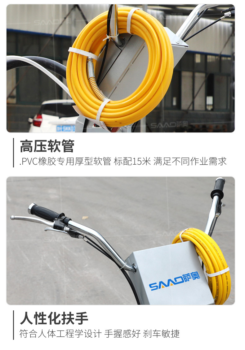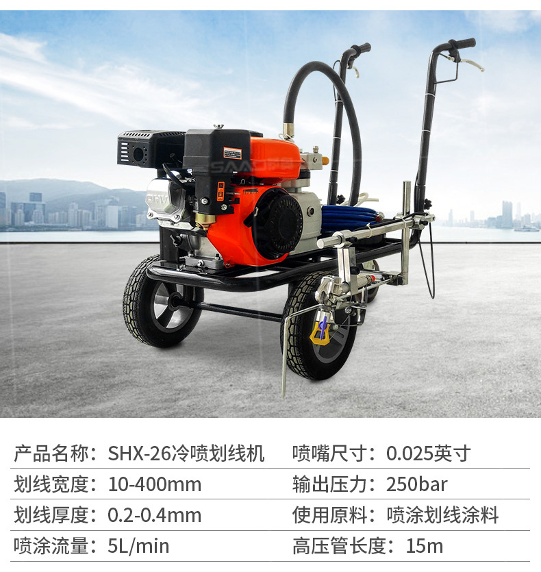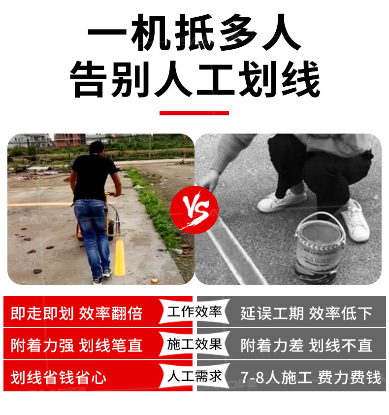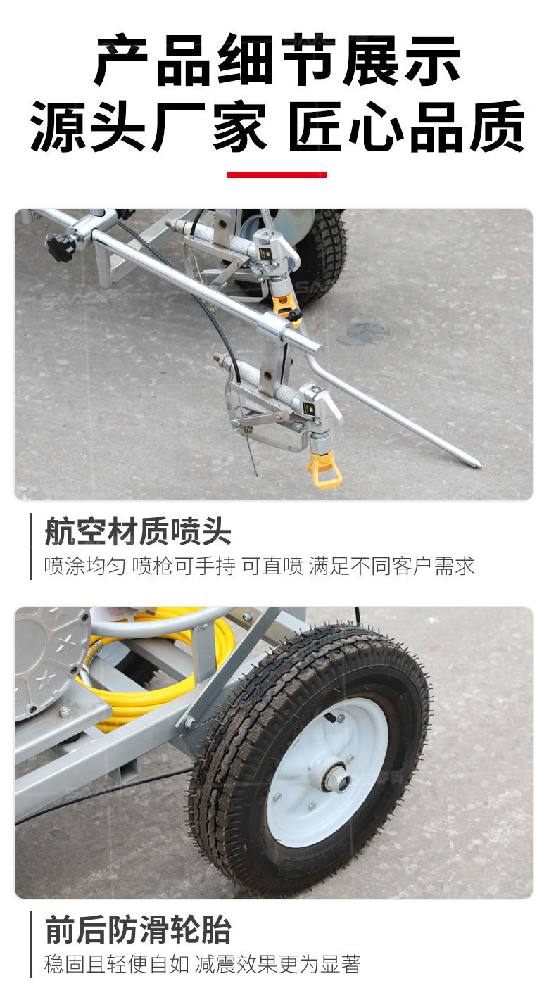小型手推式道路劃線機(jī)是一種在道路、停車場、廣場和跑道等平整地面上劃出不同約束、指引和警示等規(guī)則限制標(biāo)志的路面施工機(jī)械。最常見的就是在馬路上劃斑馬線,在路上劃車庫線