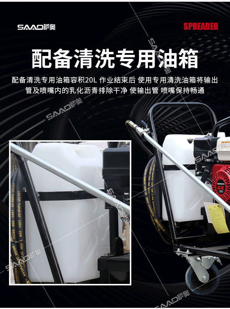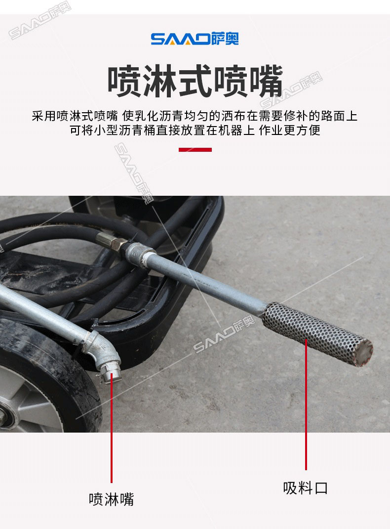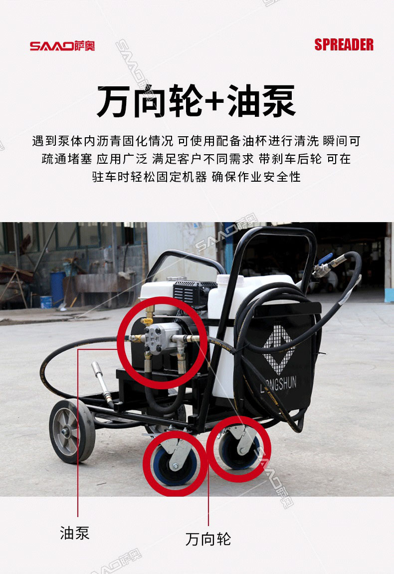 小型乳化瀝青撒布機(jī)用于修補(bǔ)瀝青道路上的坑槽,裂縫或?qū)磳⒗匣穆访孢M(jìn)行表層噴層修復(fù)翻新,由于在養(yǎng)護(hù)瀝青道路時(shí)經(jīng)常需要對(duì)路面均勻噴灑乳化瀝青或防水材料。