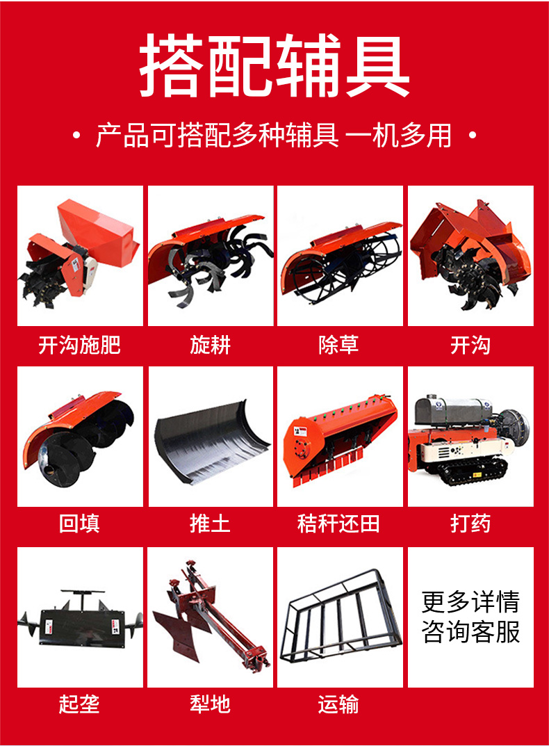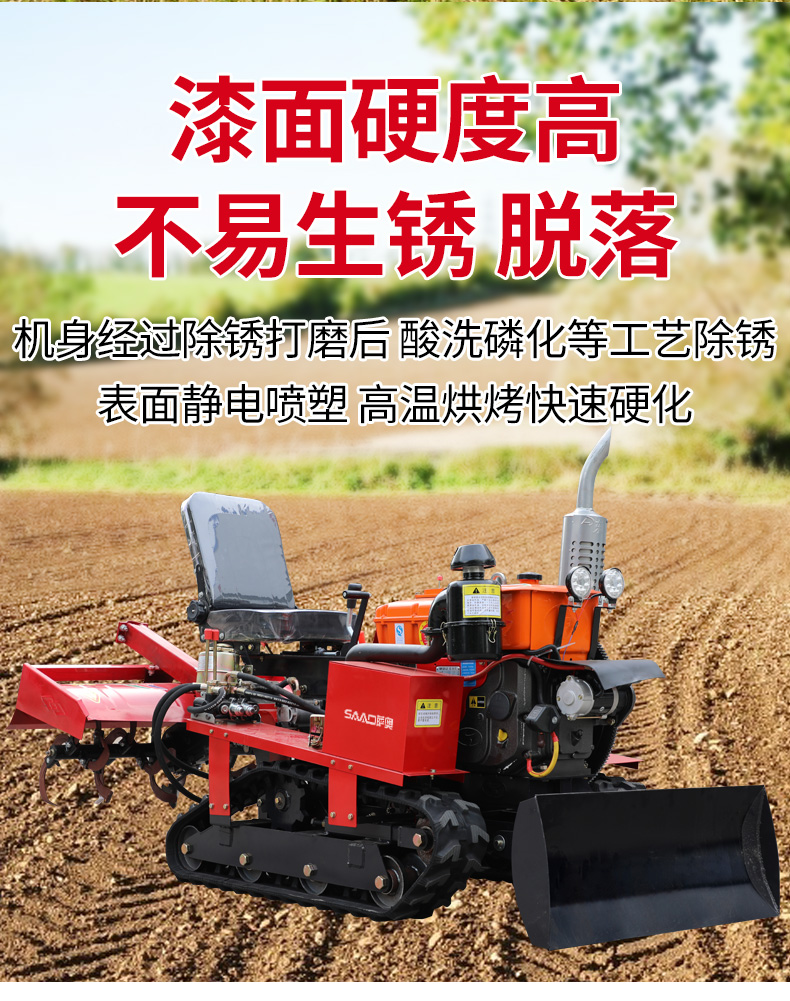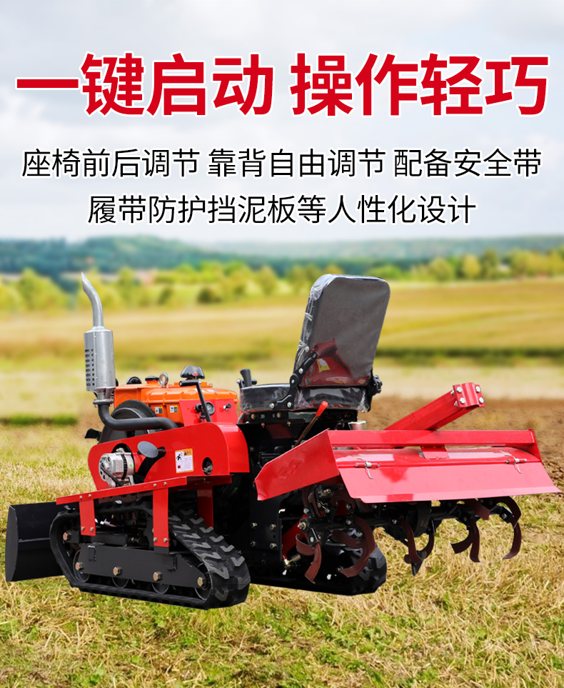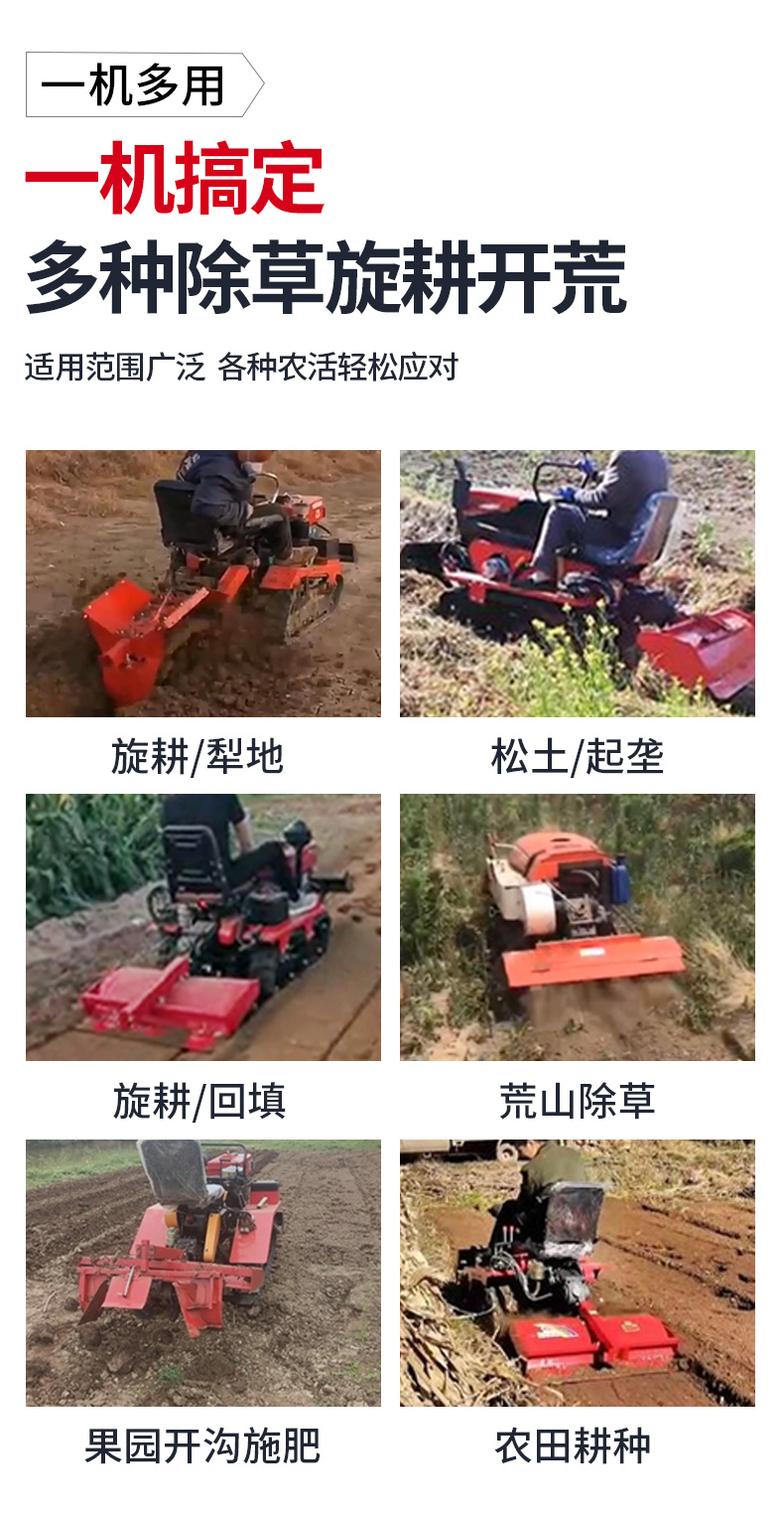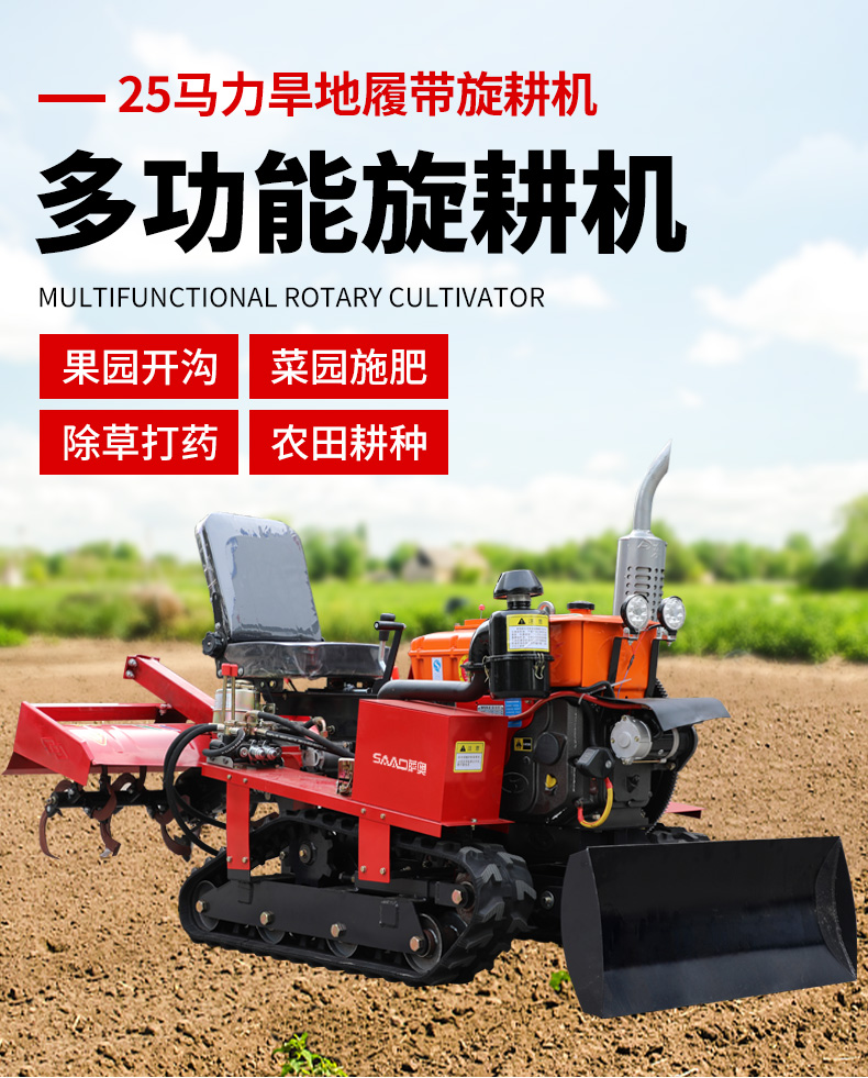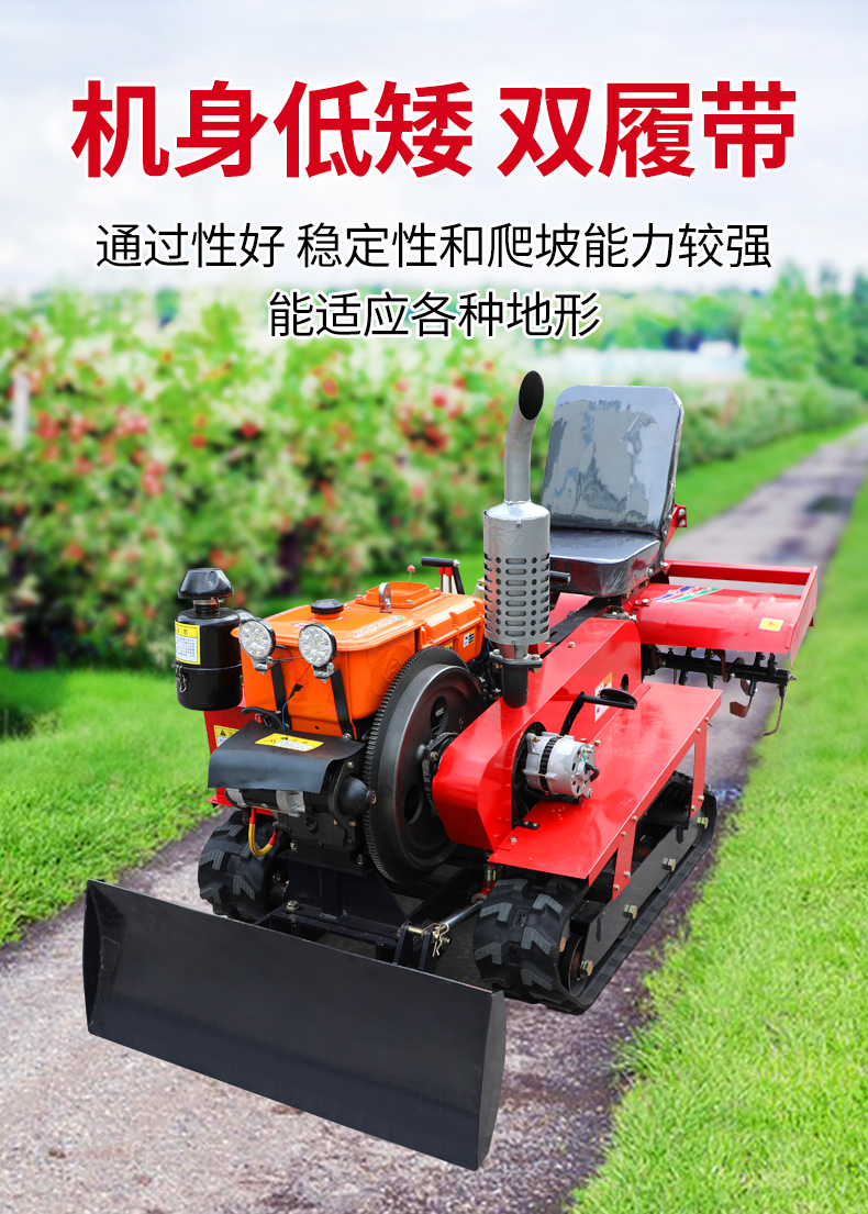 25馬力旱地履帶旋耕機適用于大面積、小面積清除雜草,適用于果園、農(nóng)田、玉米地、山地的除草作業(yè),打藥/旋耕/犁地/開溝施肥/回填/除草/起壟都可以。