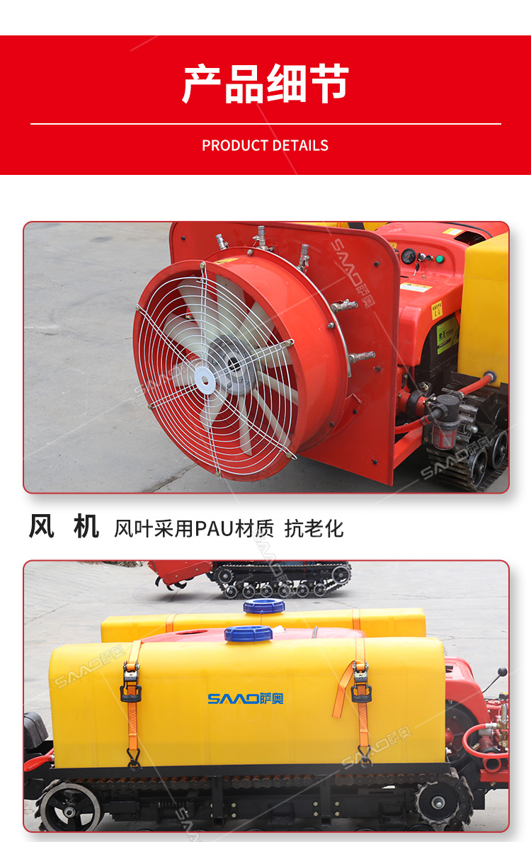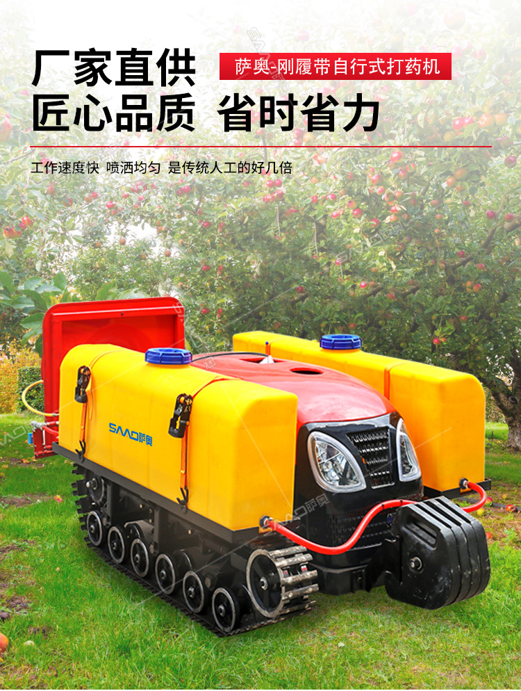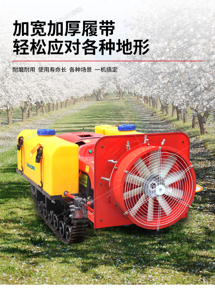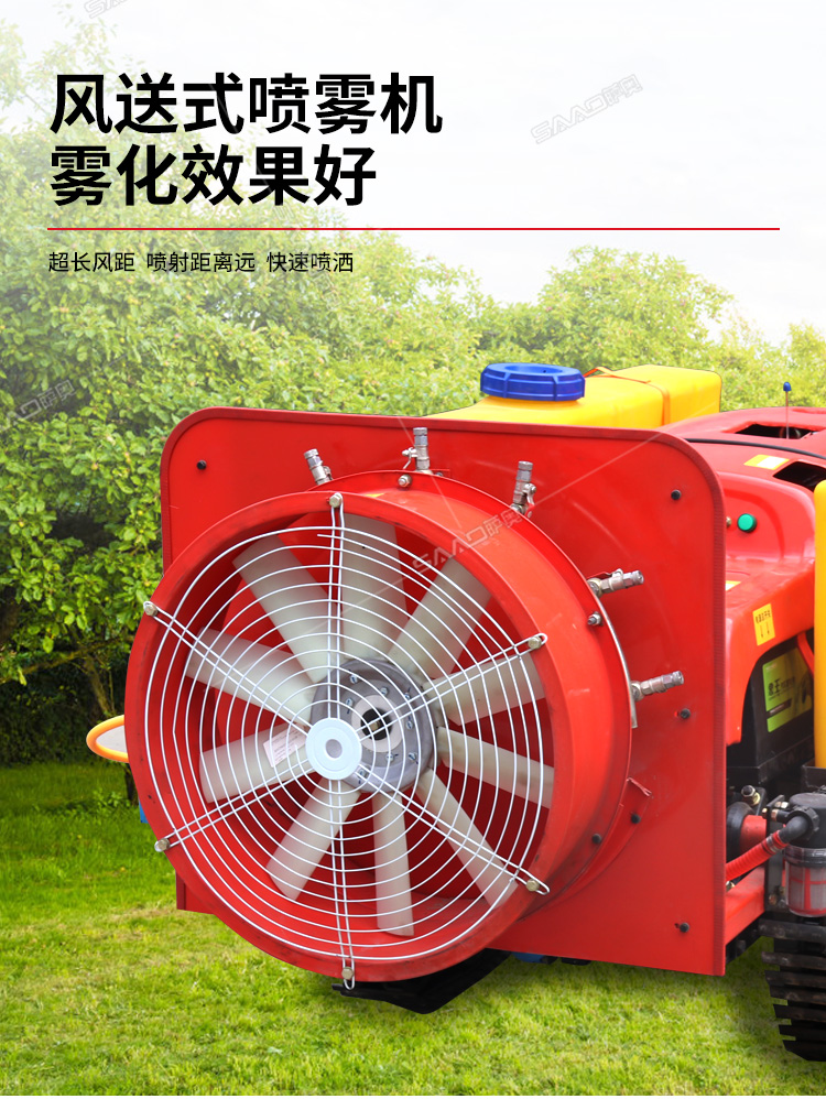 28馬力鋼履帶自行式打藥機(jī),風(fēng)送式噴霧機(jī),霧化好,噴射距離遠(yuǎn);遙控操作,人機(jī)分離,確保作業(yè)人員安全,免受藥?kù)F傷害。