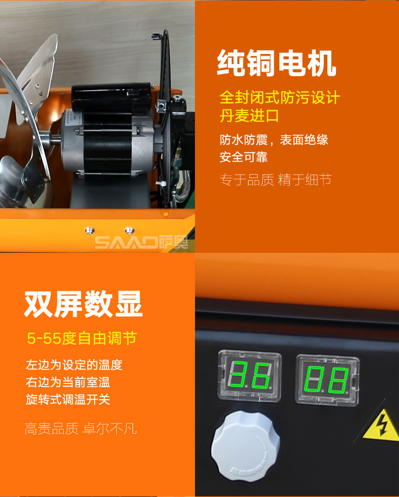 我廠專業(yè)生產(chǎn)溫室大棚暖風(fēng)機,養(yǎng)殖場專用暖風(fēng)機,15KW/30KW電暖風(fēng)機,20KW/30KW/70KW/80KW燃油暖風(fēng)機,型號齊全,全國發(fā)貨!過熱保護,恒溫,質(zhì)量保證!如需了解請致電24小時免費電話:400-860-5689