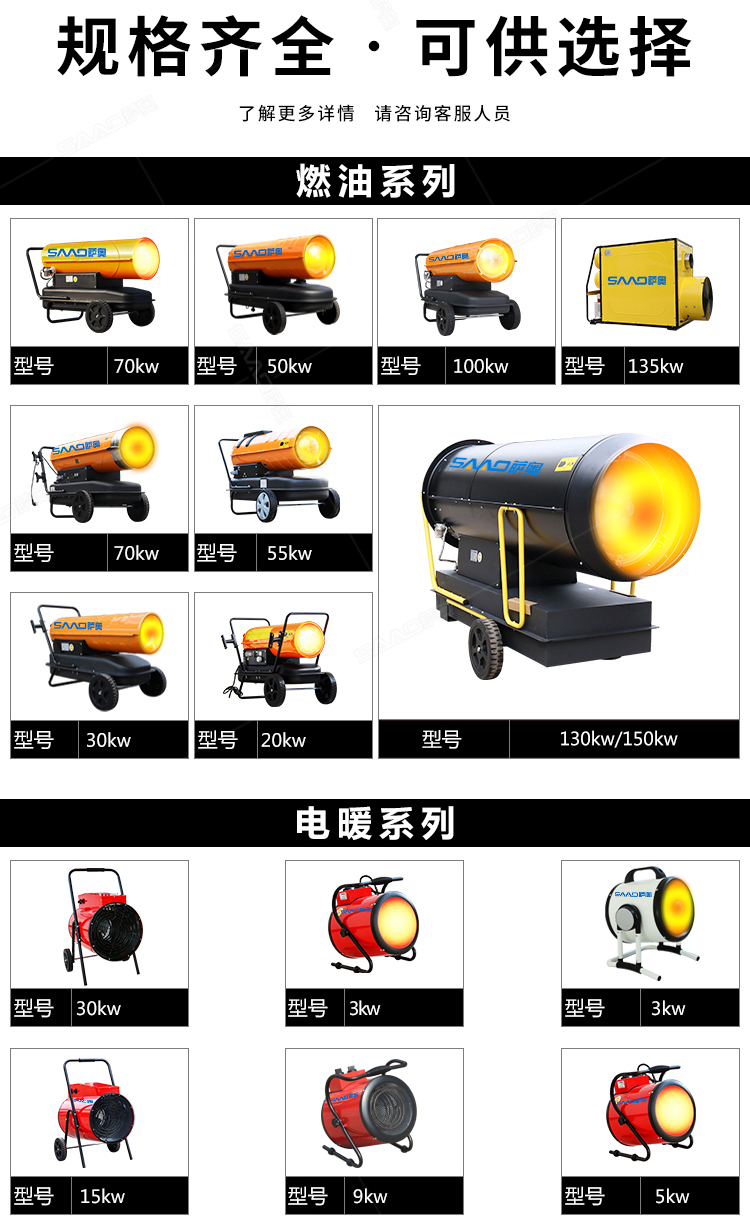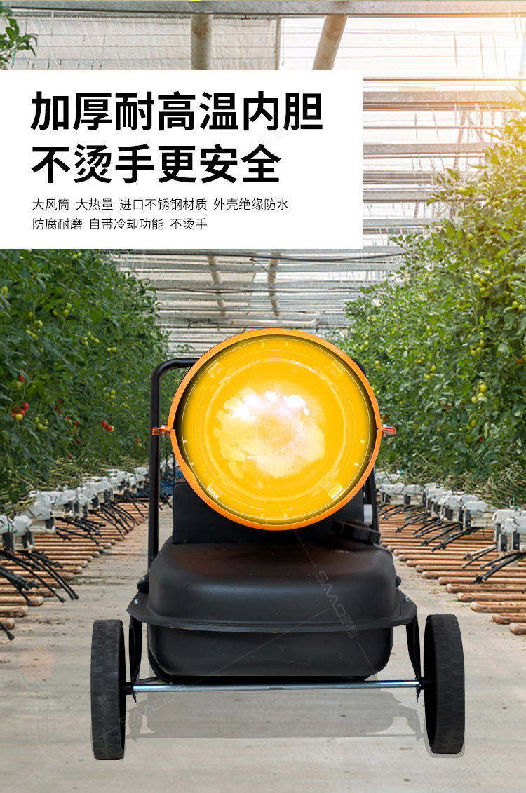 我廠專業(yè)生產(chǎn)溫室大棚暖風機,養(yǎng)殖場專用暖風機,15KW/30KW電暖風機,20KW/30KW/70KW/80KW燃油暖風機,型號齊全,全國發(fā)貨!過熱保護,恒溫,質量保證!如需了解請致電24小時免費電話:400-860-5689