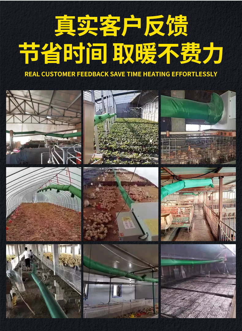 主要用于溫室加熱、育雛養(yǎng)殖、畜牧供暖、菌棚保溫、木材解凍、大棚種植保溫、廠房車間取暖等。