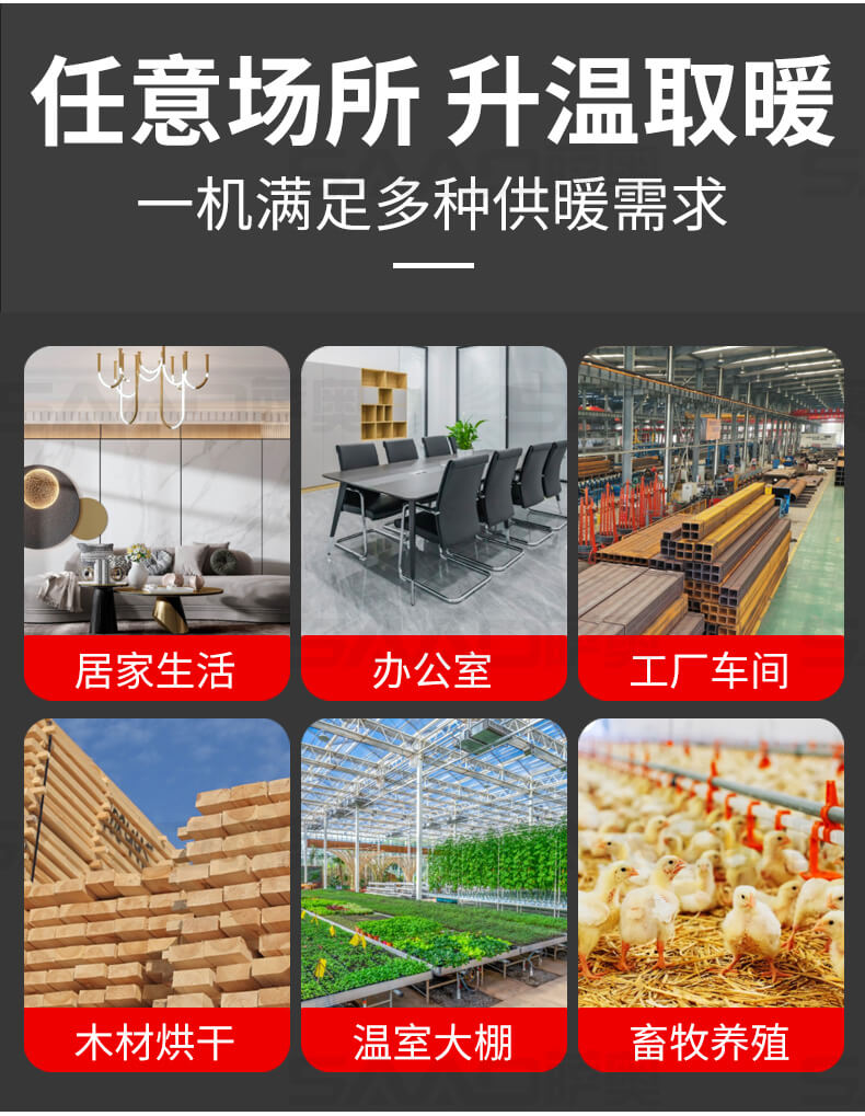 一款大功率、大面積使用的取暖設備,適合廠房、車庫、商店。辦公室、烘干室、養(yǎng)殖場等場所使用。