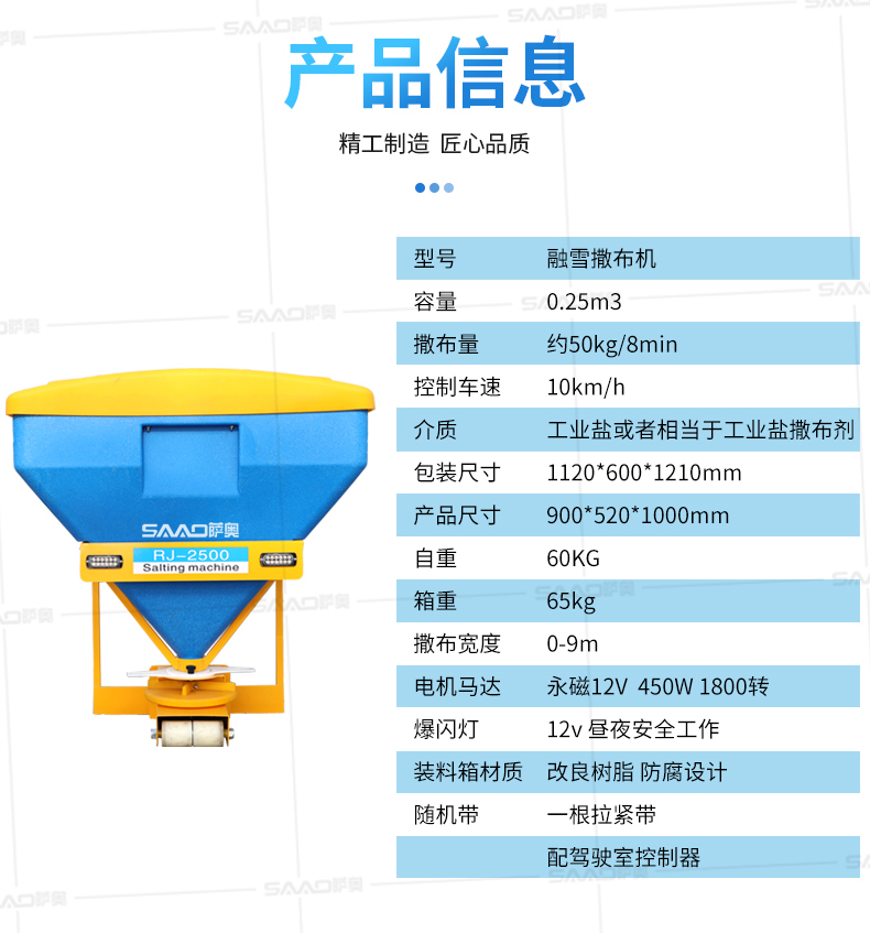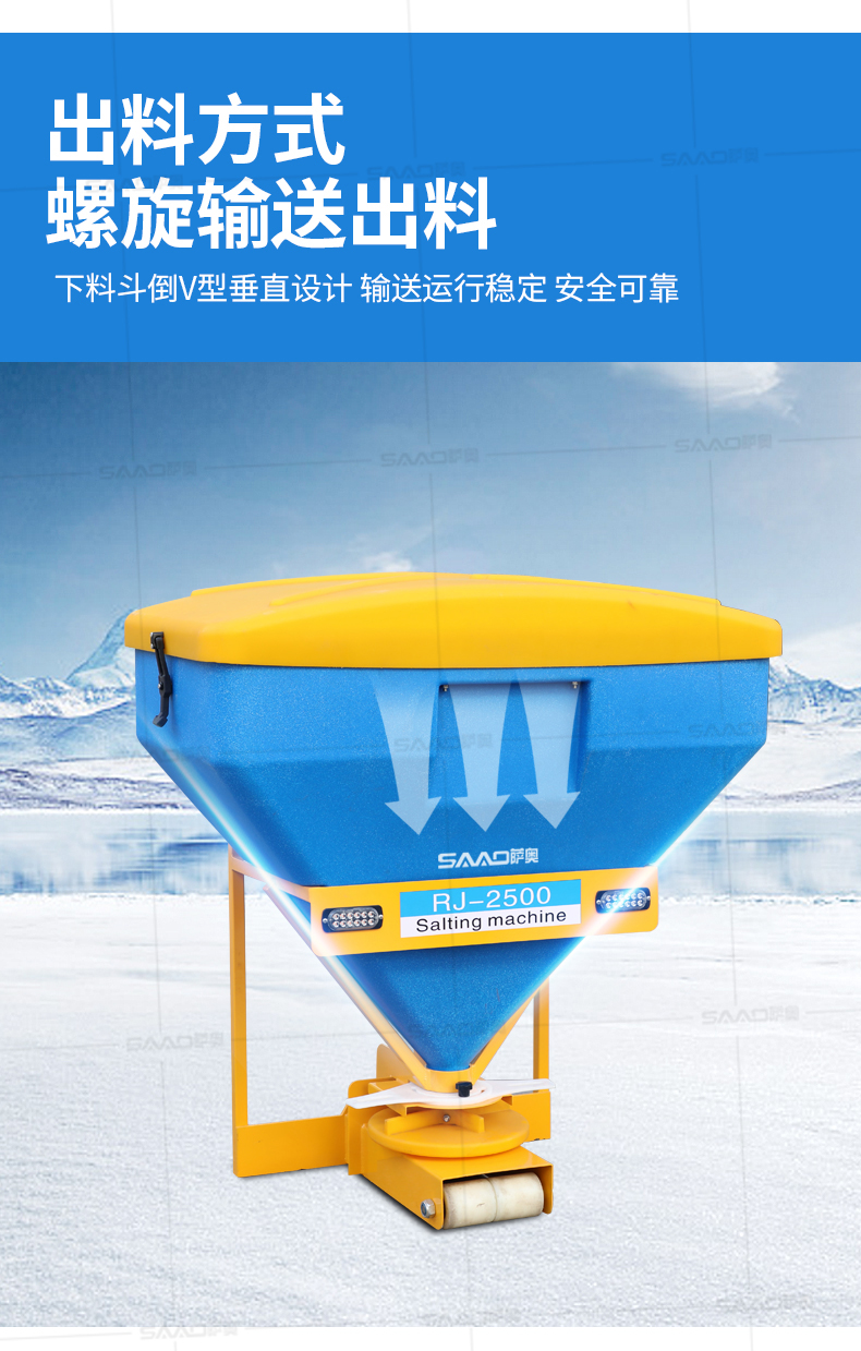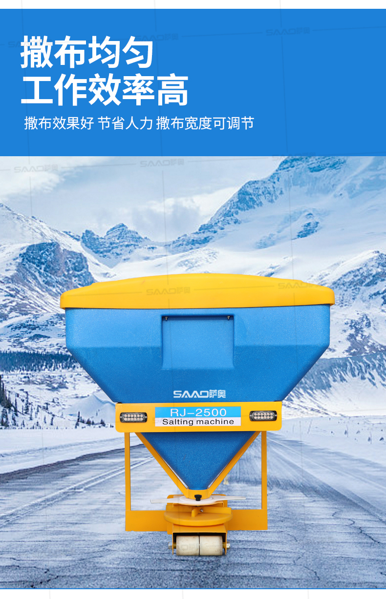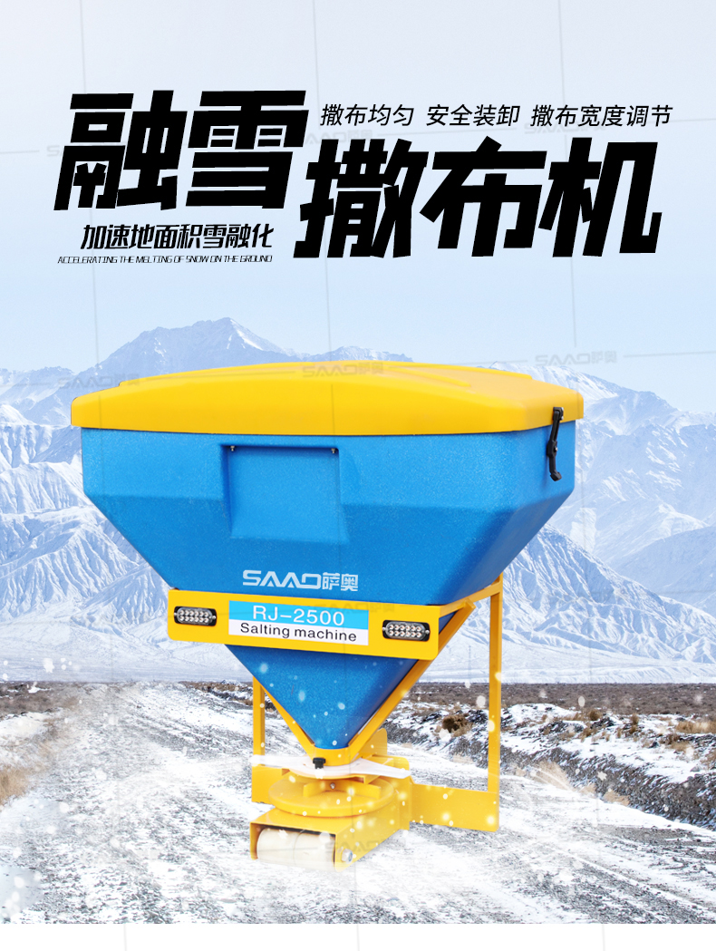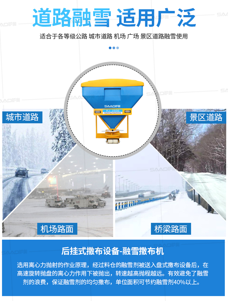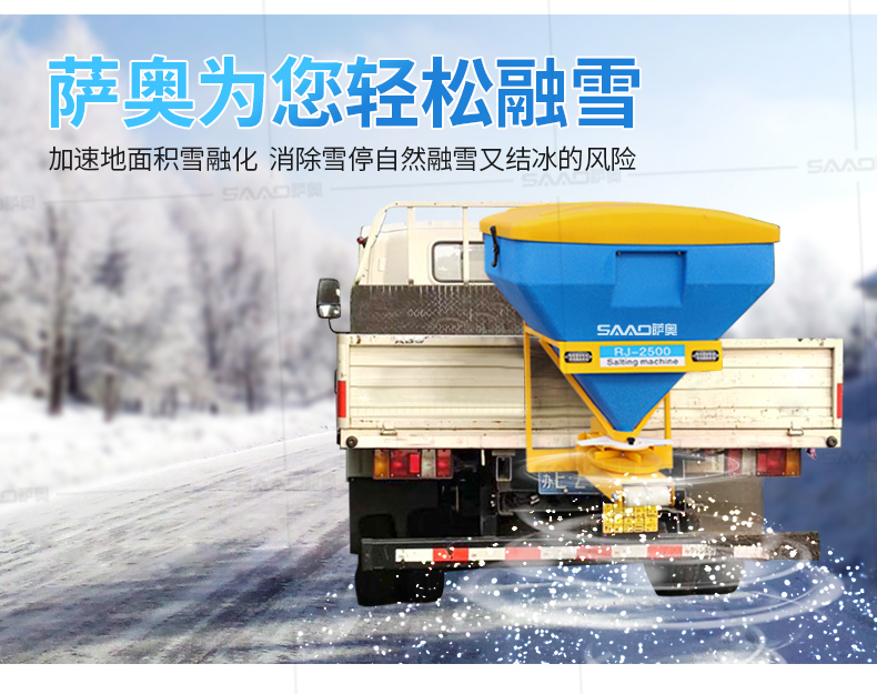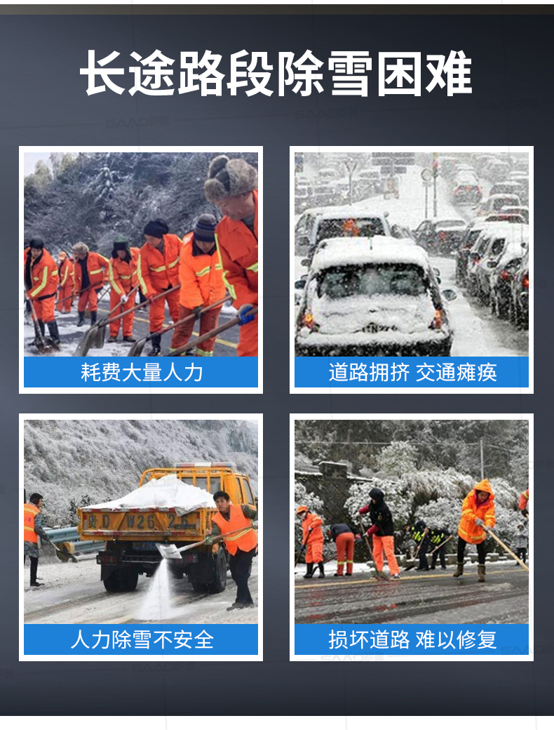 本產(chǎn)品用于道路、小區(qū)、廣場等地面積雪的融雪布撒,用以加速地面積雪融化,消除雪停自然融雪又結(jié)冰的風(fēng)險。