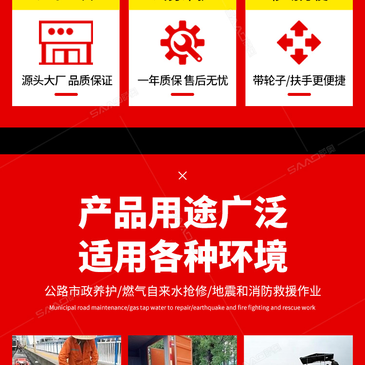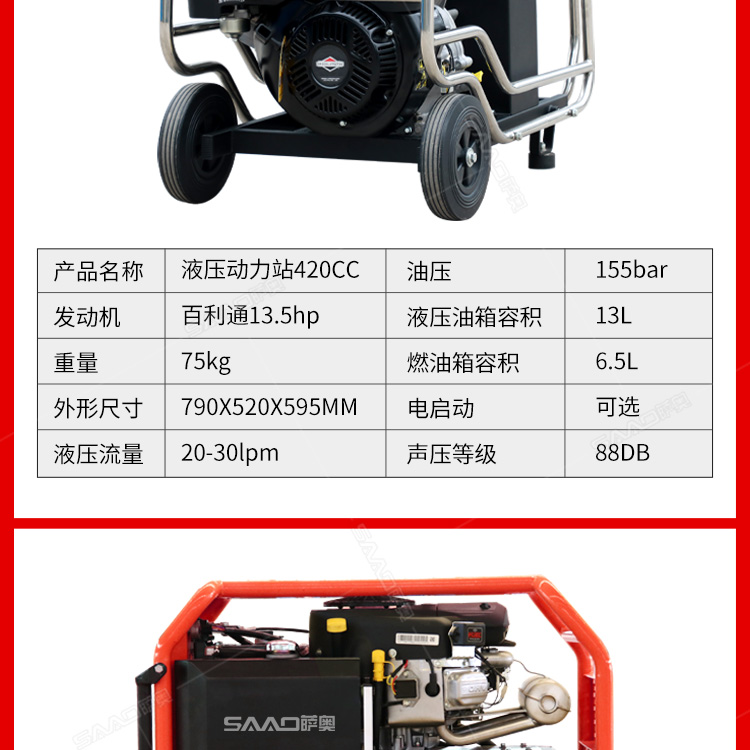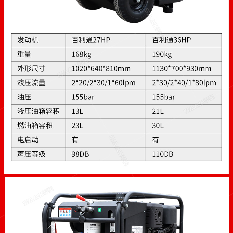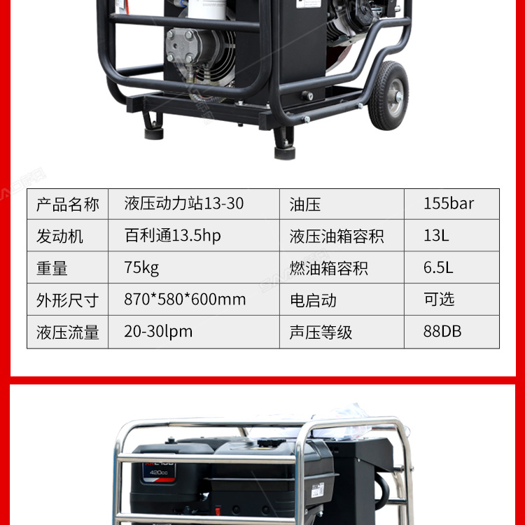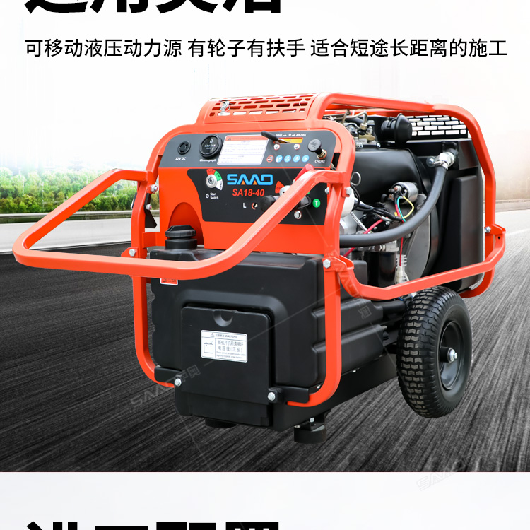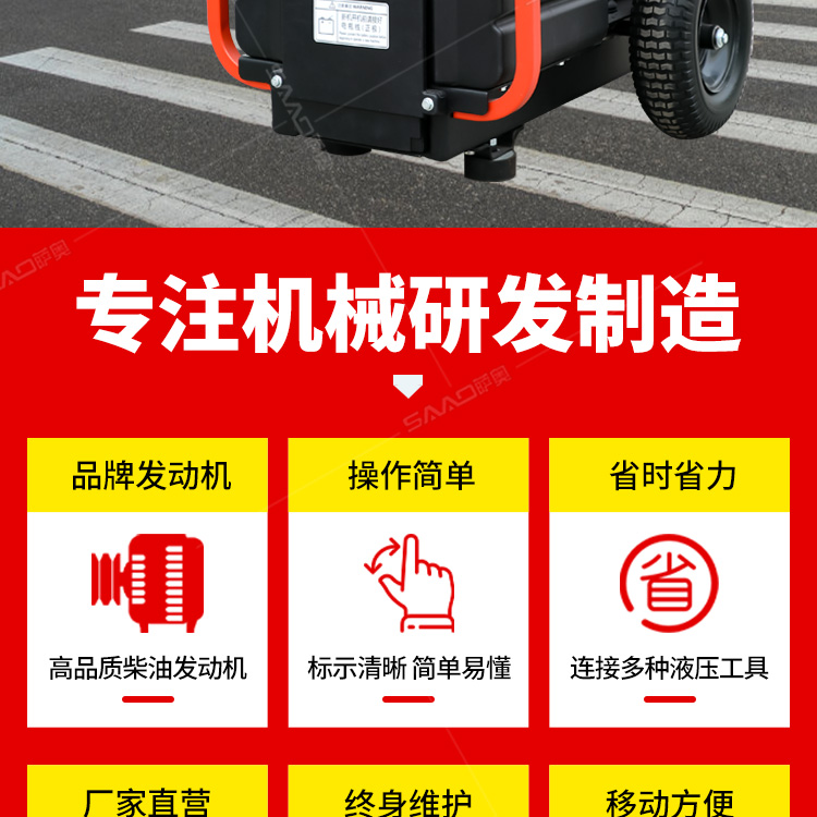 液壓動(dòng)力站使用廣泛公路市政養(yǎng)護(hù)/燃?xì)庾詠?lái)水搶修/地震和消防救援作業(yè)等